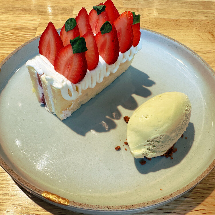 ケーキにサンドしてあるいちごは真っ赤で程よい酸味があり、生クリームとよく合います😊