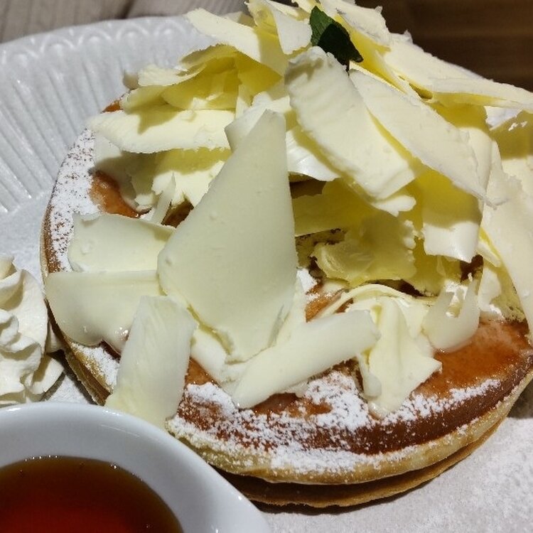 「よつ葉のふんわりけずりバターパンケーキ(てんさい糖蜜添え)」と