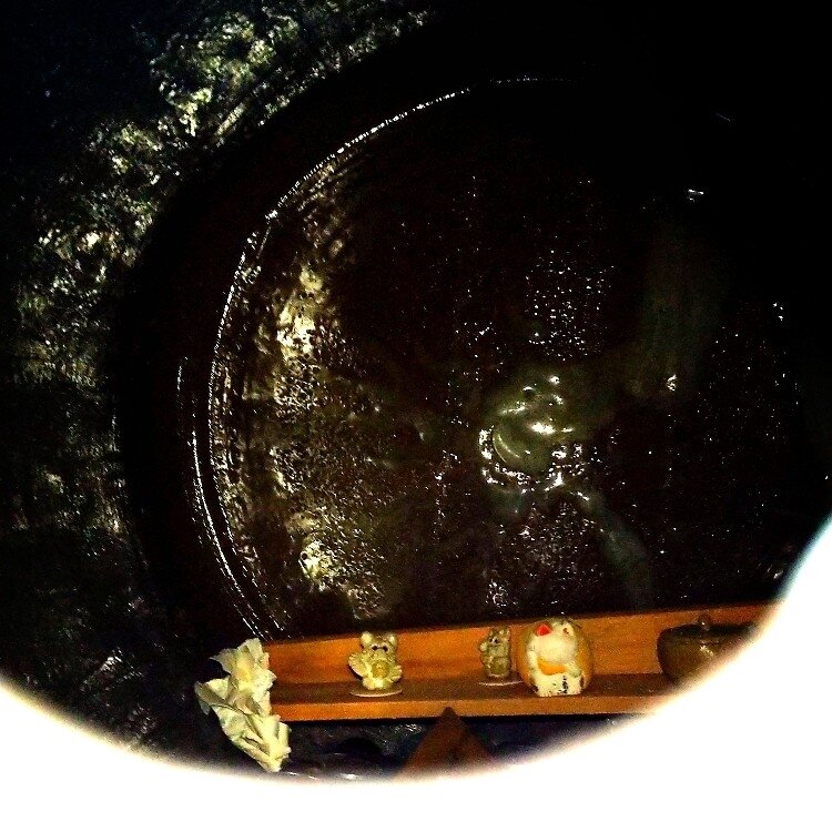壺の穴の中に何やら潜んでいるようですが、覗いても暗くてハッキリ見えません。