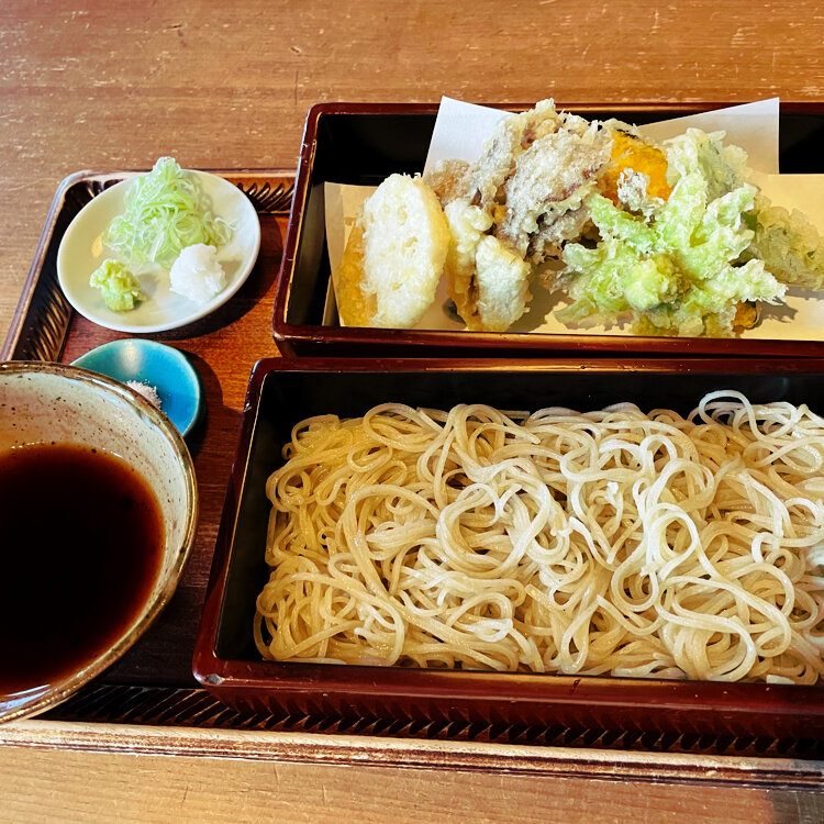 福井駅から車で1時間🚗 『白山比咩神社』と『金劔宮』の後は、『蕎麦処 草庵』で『天せいろ』をいただきに。 草庵さんは鴨せいろが有名ですが、春はふきのとうなどの天ぷらが楽しみ。香り豊かな舞茸や白山市の名物 硬豆腐、など大満足でした。 # 石川県 # 蕎麦処 草庵 #福井ひとり食べ歩き