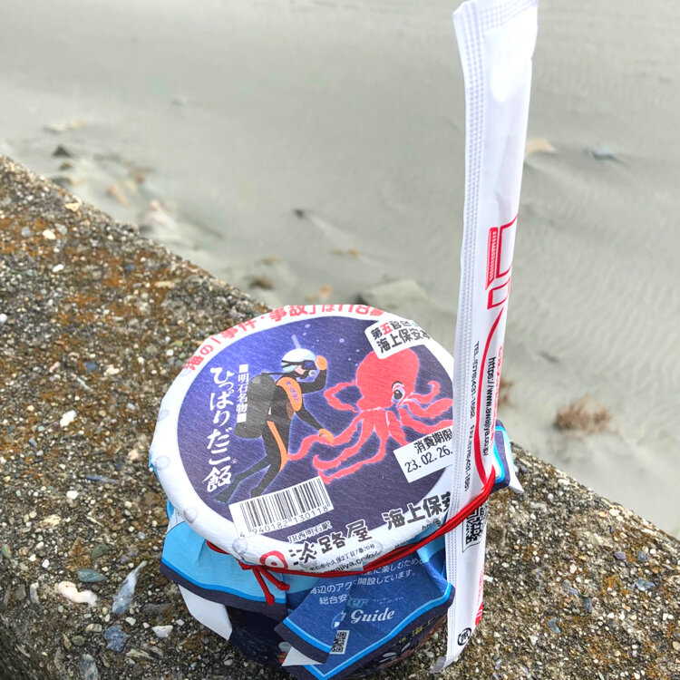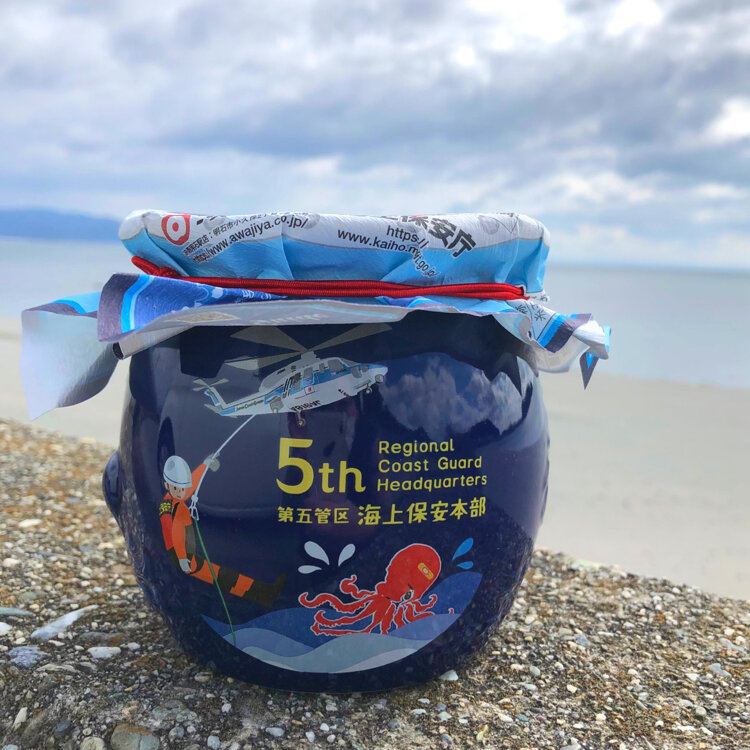 海上保安庁緊急通報用電話番号「118」📞正しい「118 番」の使用に関して理解して貰うために「ひっぱりだこ飯」を海上保安庁特別仕様に仕上げたんだそうです。海をイメージした青色の壷🟦ヘリコプターからタコを助けにいく機動救難士を描いた特別仕様。掛紙には『海の「事件・事故」は118 番』と記載し、海上保安庁の潜水士が海の中でタコと出会うイラストが描かれ中身は、神戸にある第五管区保安本部が管轄する海に多く生息するイカを加えた特別なひっぱりだこ飯です。🐙