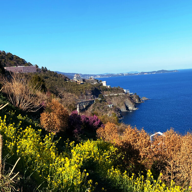 港からこの赤い鳥居⛩️が見え、駿河湾とその奥には富士山🗻が見える絶景の場所にあります。