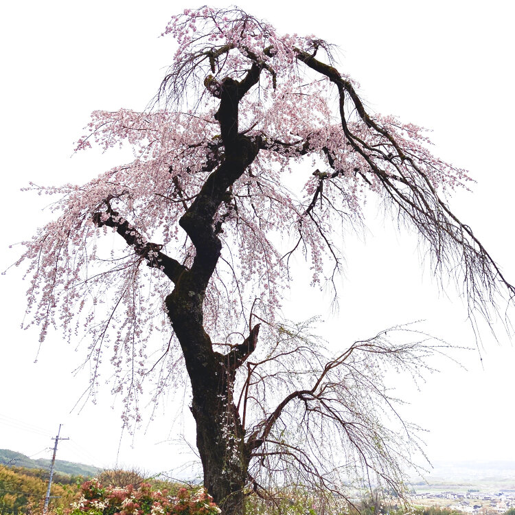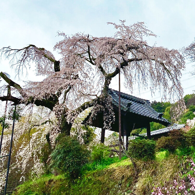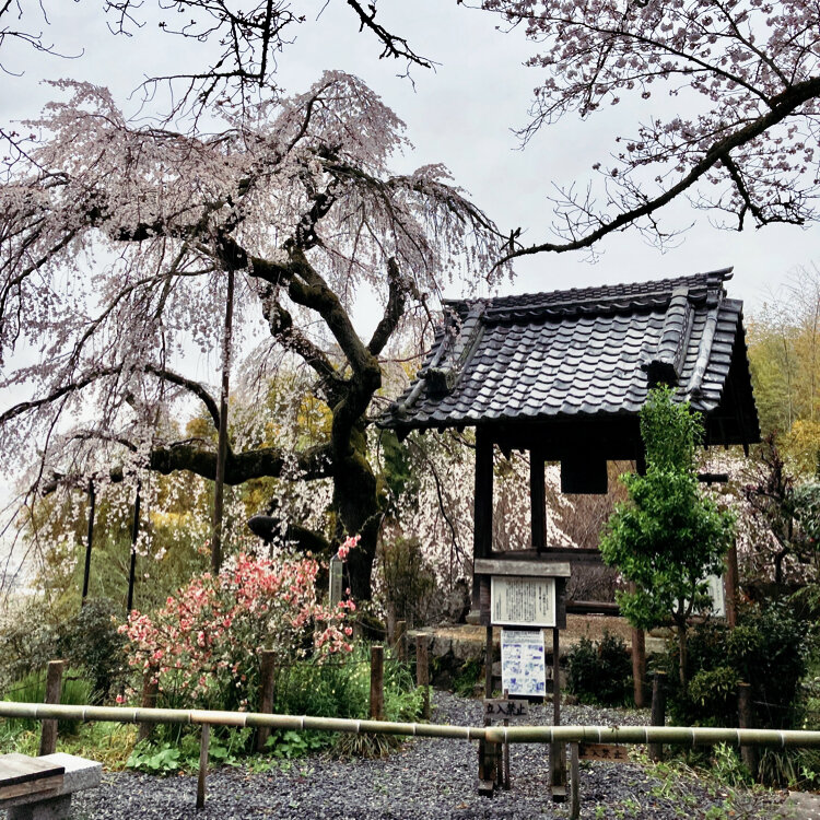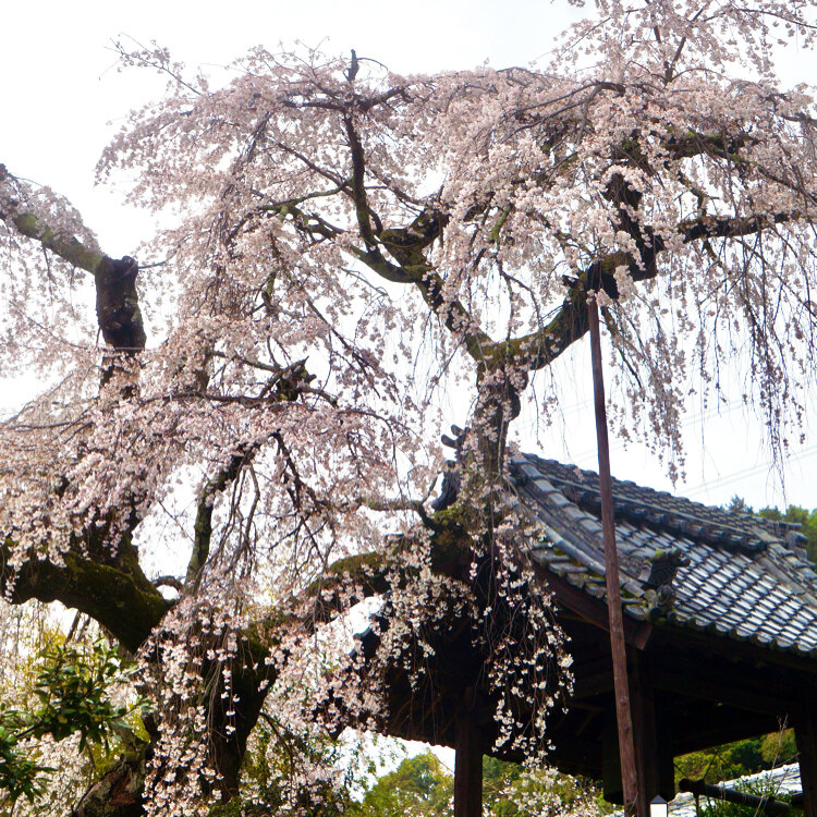 鐘楼の横にある枝垂桜は江戸時代享保年間に植樹されたといわれており、円山公園の先代の枝垂桜と親木が同じで、現在の円山公園の枝垂桜の叔父にあたります。また鐘楼下の畑には、樹齢100年になるこの枝垂桜の子桜が2本植樹されています。境内にはこのほかに、江戸彼岸や水害復興記念にと当時の京都府知事から贈られた染井吉野なども植えられています。