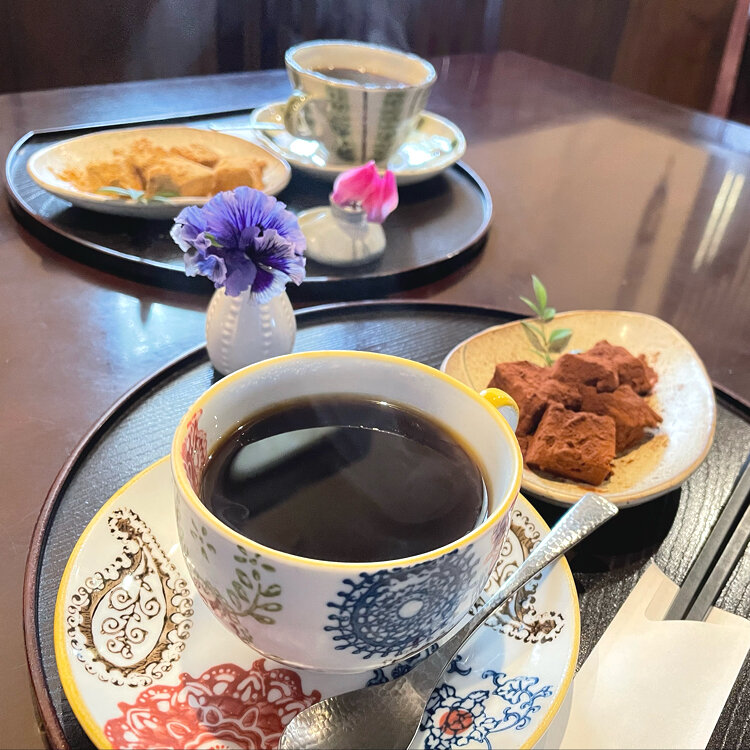 コーヒーとわらび餅のセットをいただきました。
