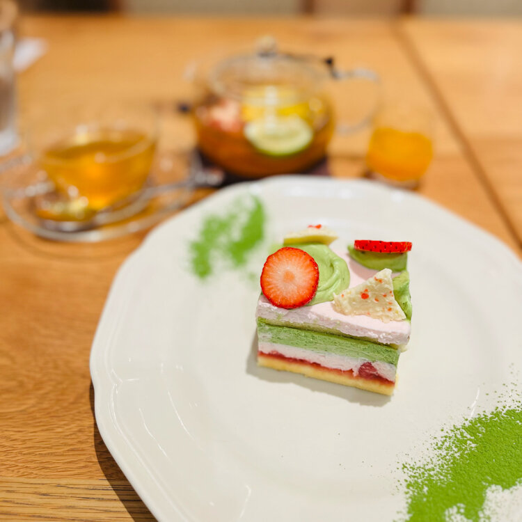 🍰抹茶と苺のショートケーキ ☕️🫖柑橘ハーブティー 温州みかんのソース アフタヌーンティー・ティールーム