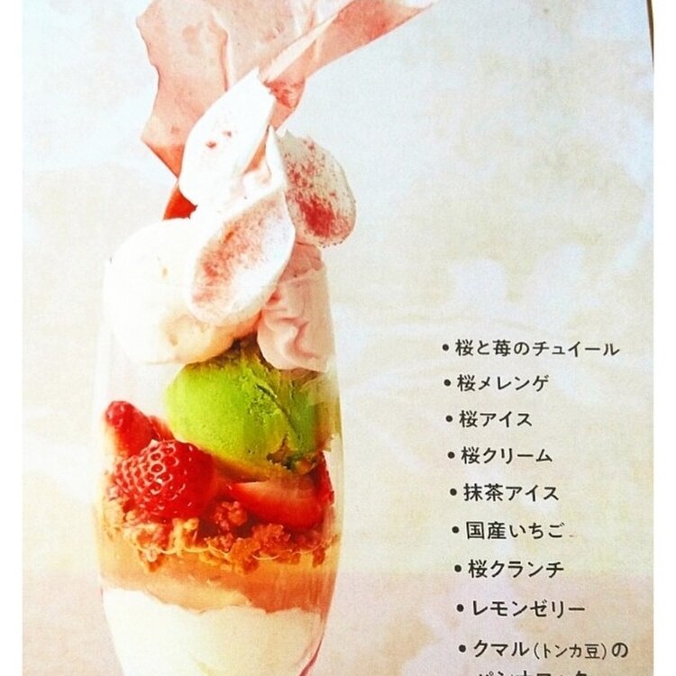 桜メレンゲの軽い空気感、桜アイスの桜色に抹茶のグリーンが共に映えていました。