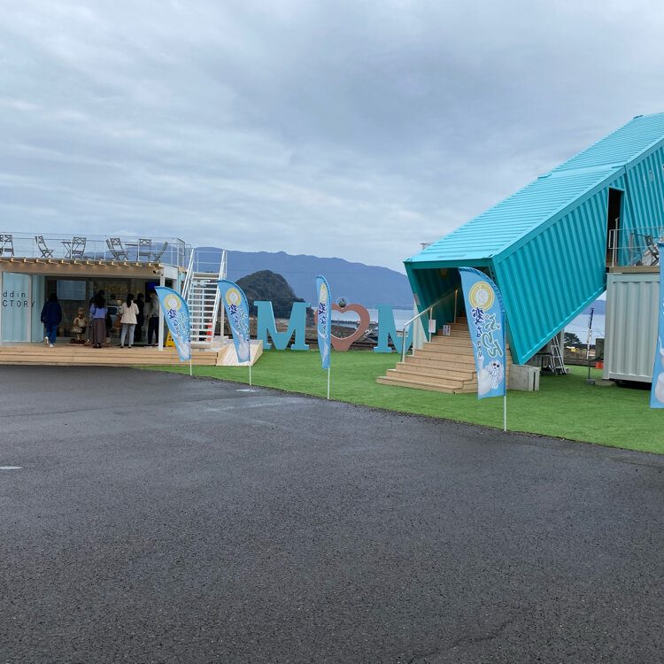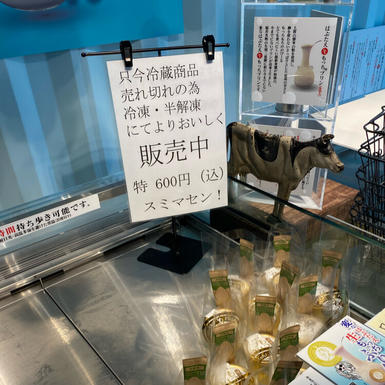 変なはぶたえ生もっちりぷりん専門店 敦賀市潮風ラインと国道8号線が交差する所に水色のコンテナが目を惹く土日限定プリン屋さん 福井銘菓羽二重餅を製造するマエダセイカが経営するだけであってプリンは餅粉でできています😆 だから伸びる〜💦もちもち♡ ちょっと食べづらいですが生乳の甘さと餅の柔らか食感がなんと不思議なプリンです 午後に行ったのですが冷凍のみとなってしまいました。いかにもインスタ映えを意識した建物なので皆さんここで食べていかれるのですね。
