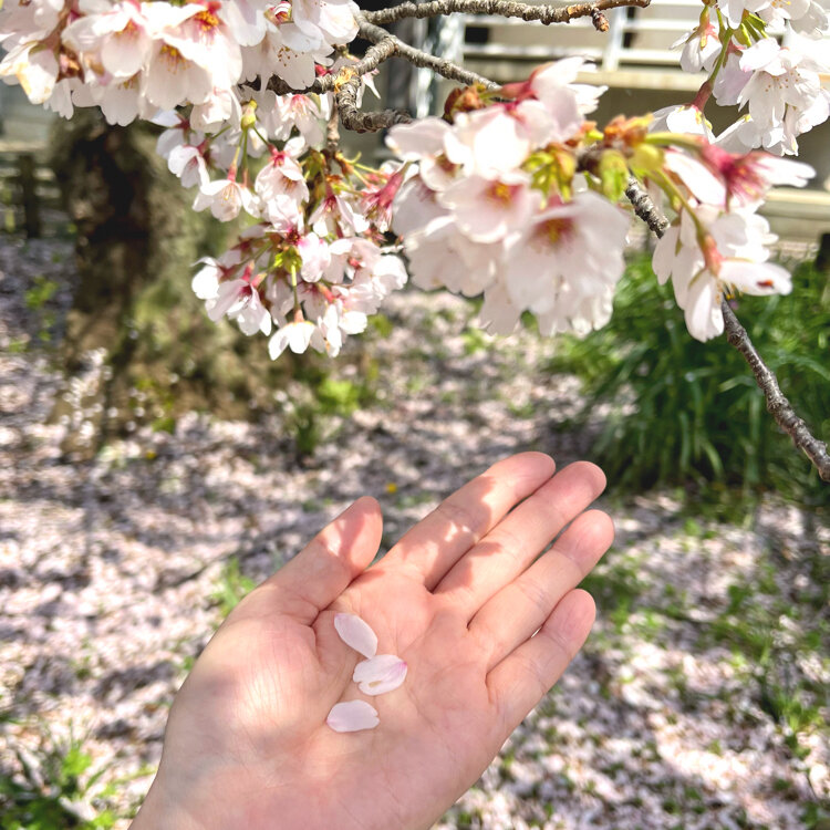 ソメイヨシノは、はらはらと風に乗って美しく舞って~🌸🍃ちょっと捕まえてみましたよ✋