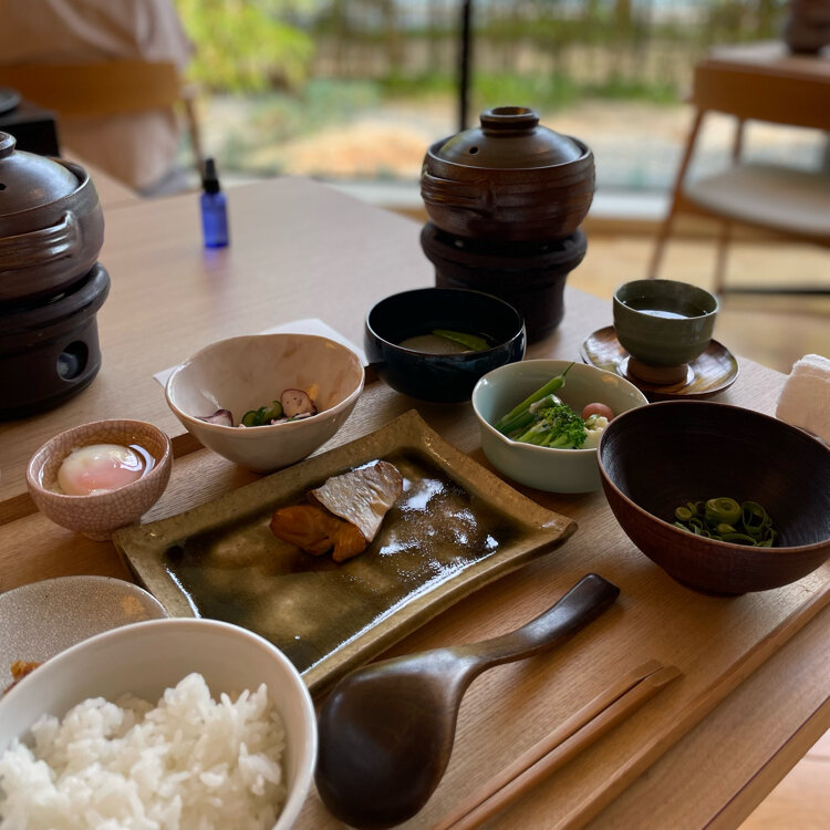お誕生日の小さな旅8 江田島荘 朝ご飯 メニューに島のお母さんの朝ごはん ってありました まさにそんな感じ(*´꒳`*) お釜で炊いてるご飯が美味しい‼️ お魚や付け合わせのお野菜にお味噌が美味しすぎ 本当にご馳走さまでした ご飯の後足湯をして海岸をお散歩 海が綺麗で素晴らしかったです