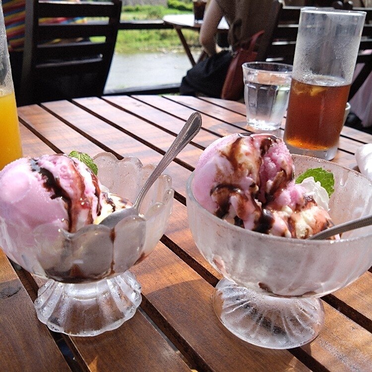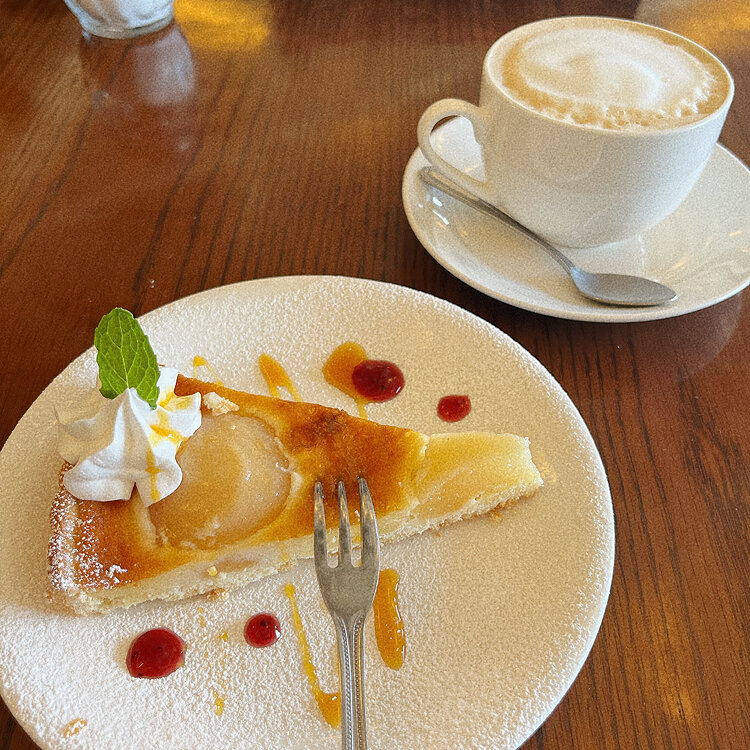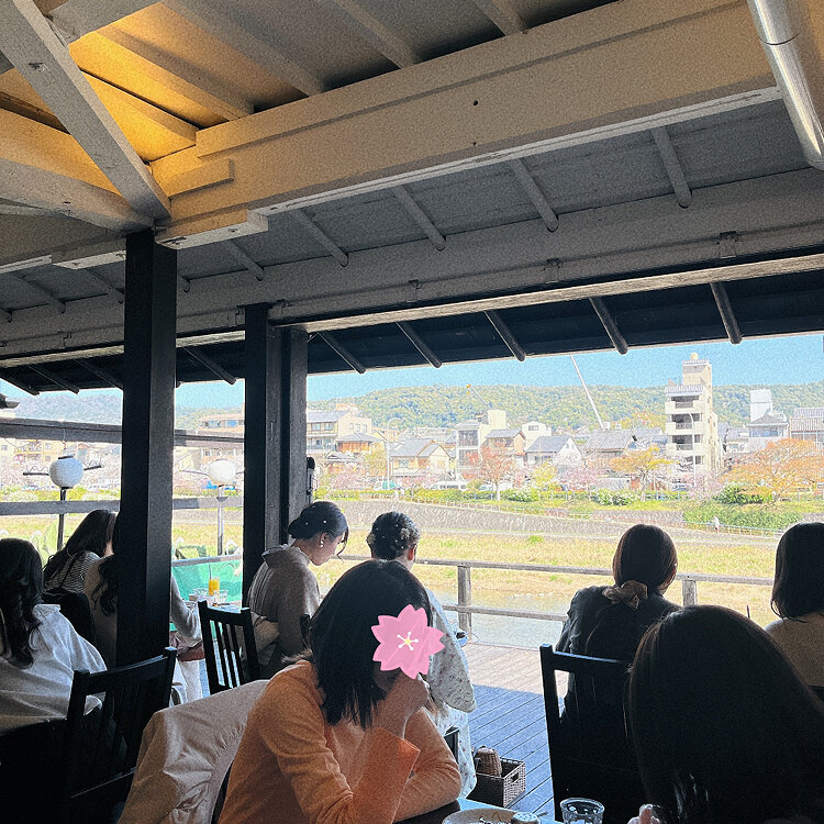 少し遠くから鴨川と桜を眺めながらのいいカフェタイム🌸