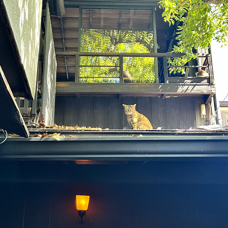 ふと見上げると、屋根の上に猫ちゃんが💓