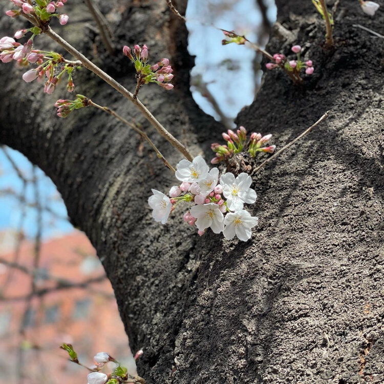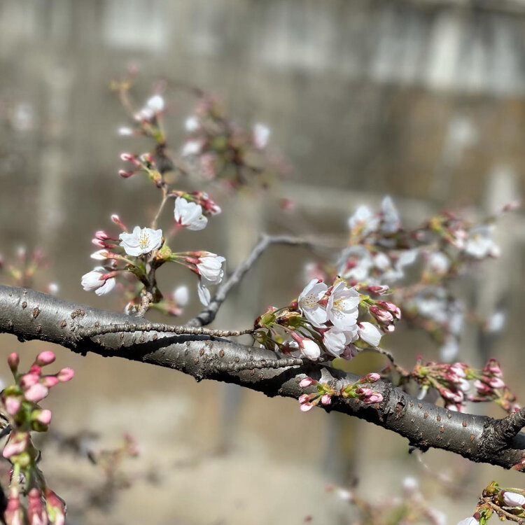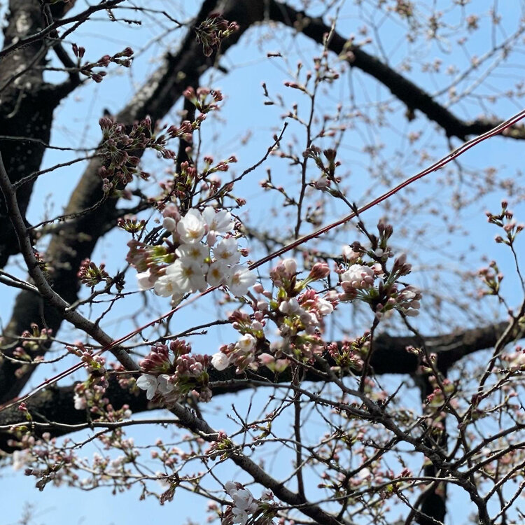 石神井川沿いの桜並木🌸 . ソメイヨシノの蕾がムクムクして ちらほら咲いている花がありました♪ . 満開まであと少し、わくわく🥰 . #石神井川 #桜並木 #春めく