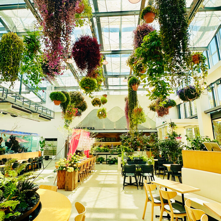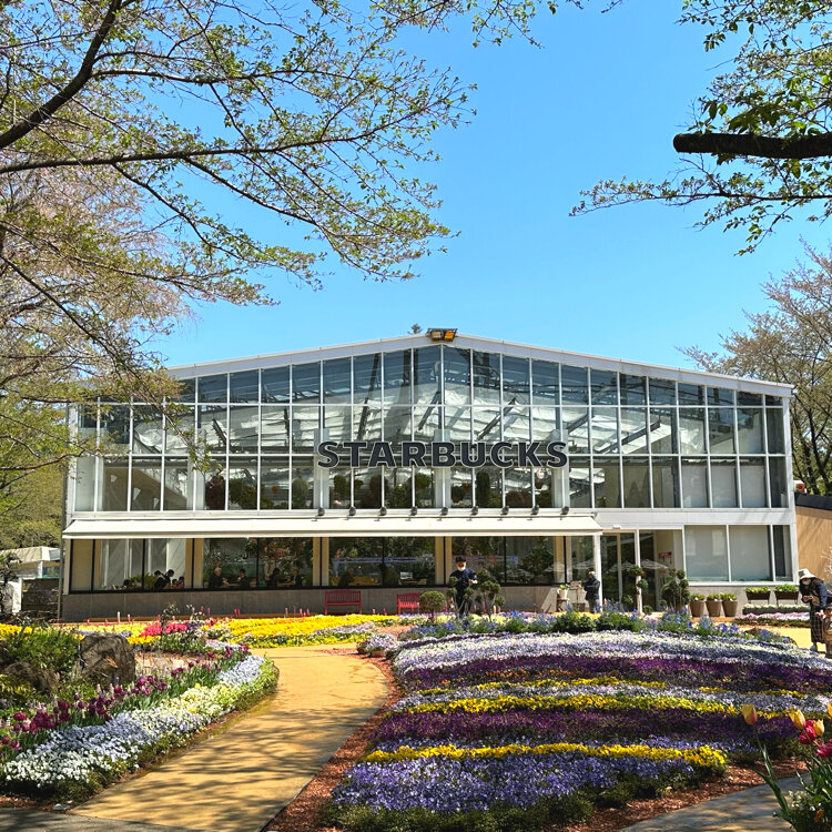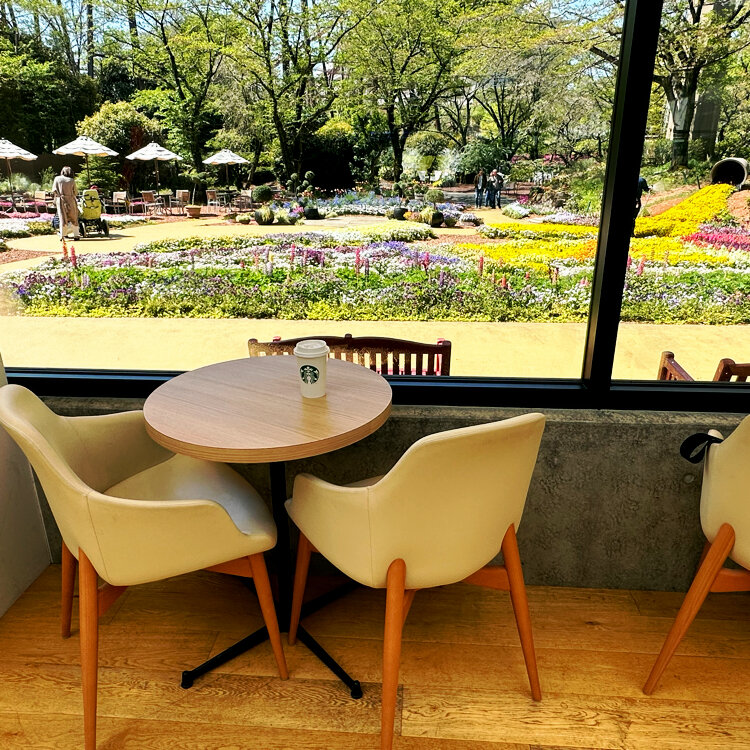 まずは、お花と緑に囲まれたスターバックスへ。