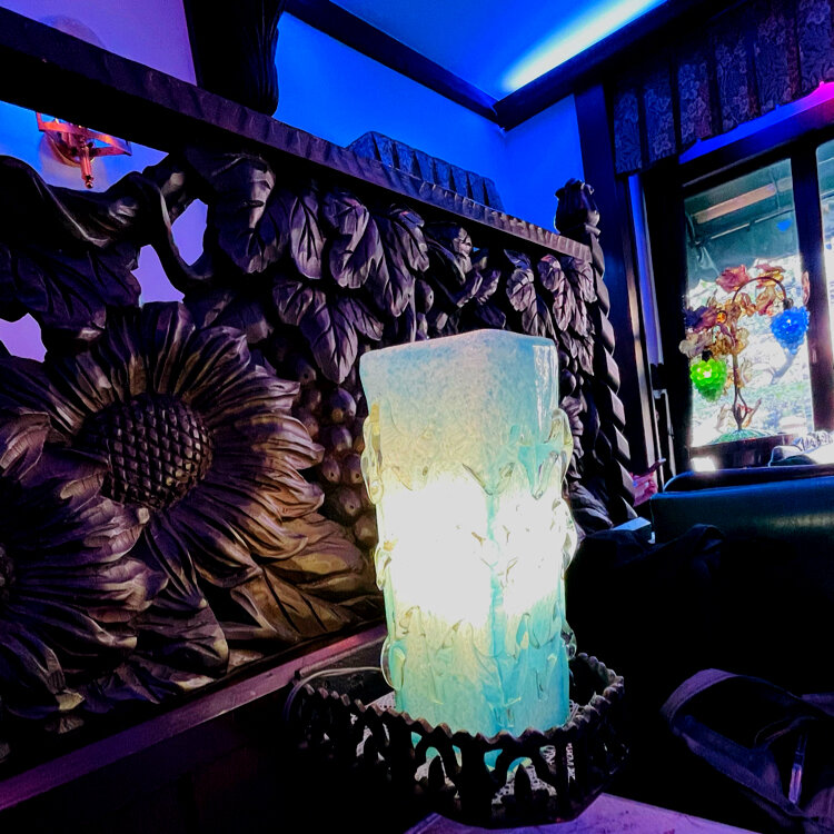 壁やパーテーションの木彫の葡萄のゴツゴツとした質感も落ち着きます