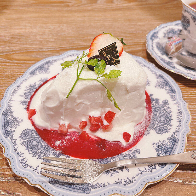 甘酸っぱいいちごソースと甘さ控えめの生クリームを絡めながら食べるケーキは最高でした💓