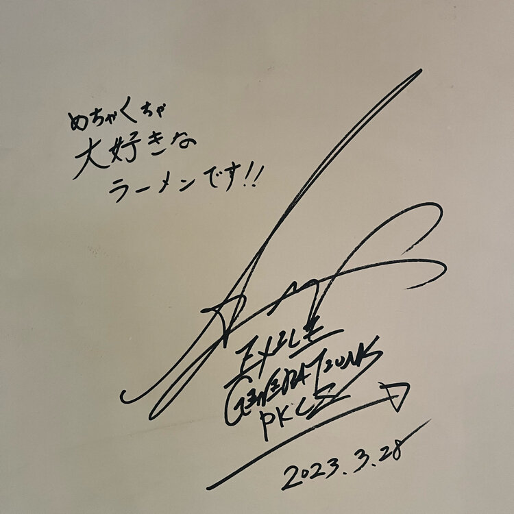 🍴水田商店🍴 30分程行列を並んだラーメン🍜 黒と白があり 私は「焦がしニンニクの黒マー油」のらーめん黒を。 濃いのかな〜と思ってたけど意外とあっさりで🤤 替え玉は1玉無料✨ EXILE/GENERATIONSの白濱亜嵐くんが 大好きなお店らしいです。 先日愛媛のローカル番組で来ていました✨