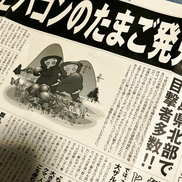 箱の中にはヒバゴン目撃情報の新聞も入っていて
