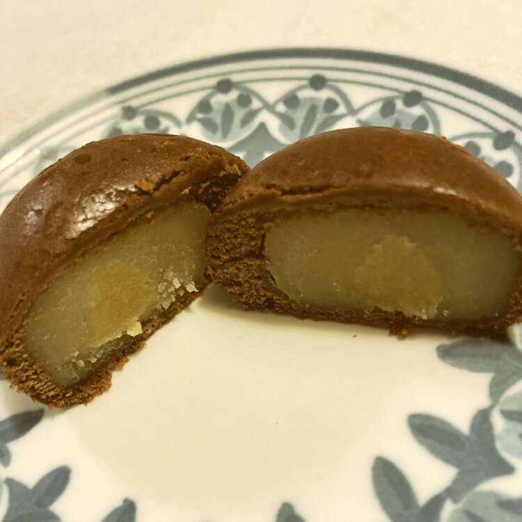 見かけは黒く中にはさつま芋餡が入っています