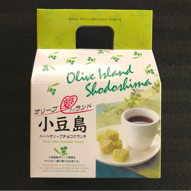 オリーブ❤️アイランド小豆島🫒 ハートオリーブチョコクランチ💚 小豆島産オリーブ茶葉をチョコと一緒に練り込んだ、ハート型のチョコ💚サクサクで美味しい可愛い、小豆島に行ってた友達のお土産です🎵