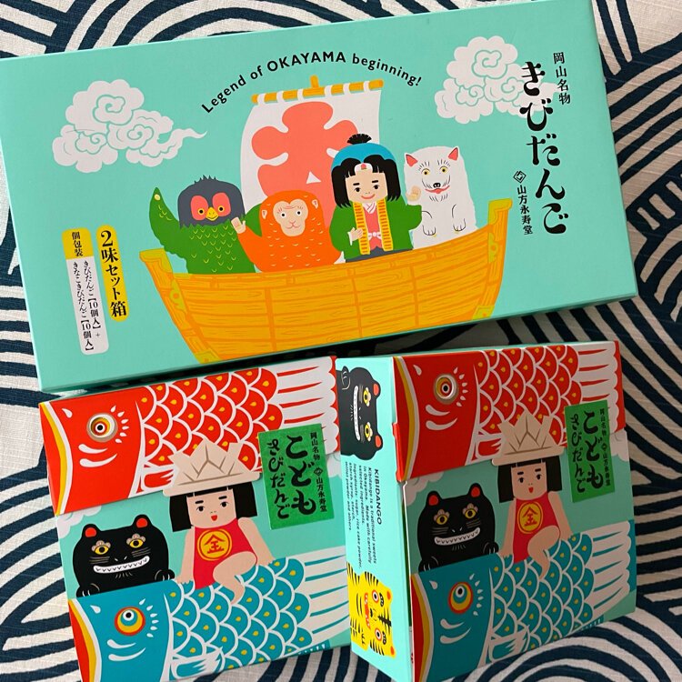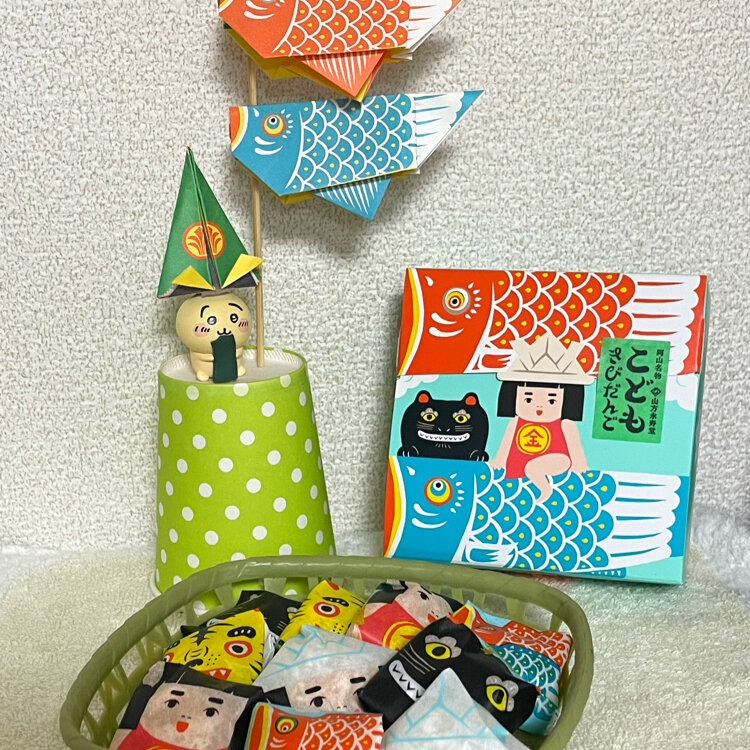 連休前だったので、こどもの日の可愛らしいパッケージの吉備団子を見つけてしまいました。