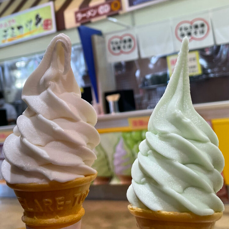 素通りする事は出来ず、お芋ソフトクリームの事はすっかり忘れ、白桃とマスカットのソフトクリームを美味しく頂きました。