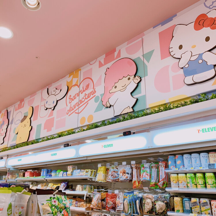 サンリオコラボコンビニww店内も外観もイートインスペースもキャラクターだらけ💕サンリオファンにはたまらない空間でした🫶他のコンビニも結構コラボな店舗が多い印象です😍