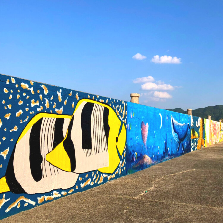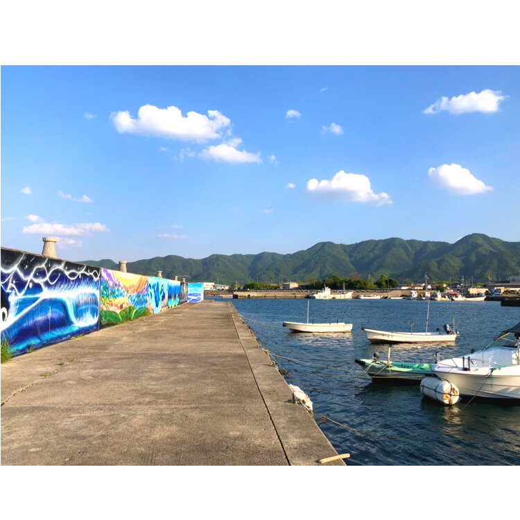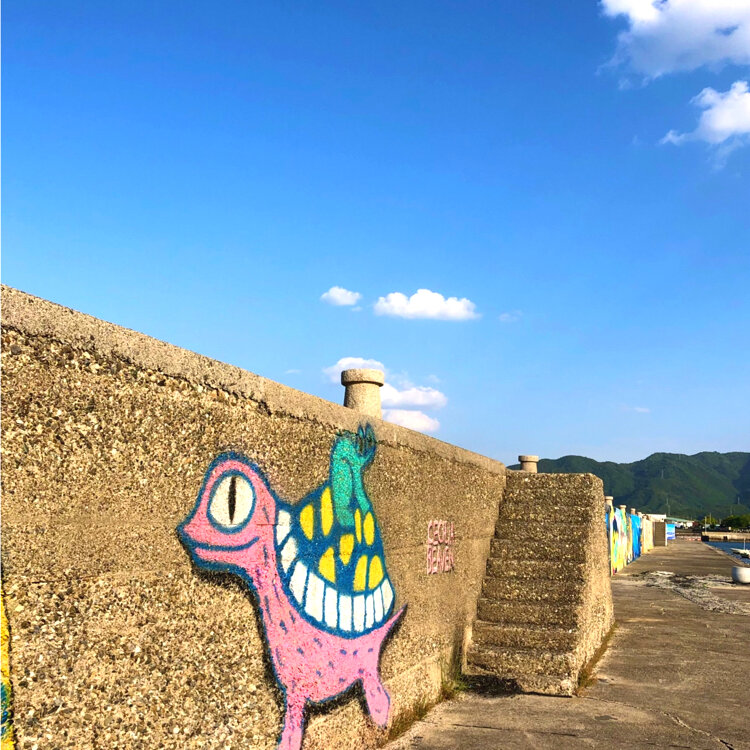 東かがわ市を活性化するため、引田の漁港の堤防に作品を描くプロジェクト「湾岸アート」🎨 なんでもない堤防にうわー👀💙ってなるスプレーアートが向こうまでずぅーと続き、青空と海、そしてポップなアートにわくわくしぱなしでした🎵 2023.5.1 #湾岸アート #引田湾岸アート #スプレーアート #東かがわ市 #堤防 #私のことりっぷ旅