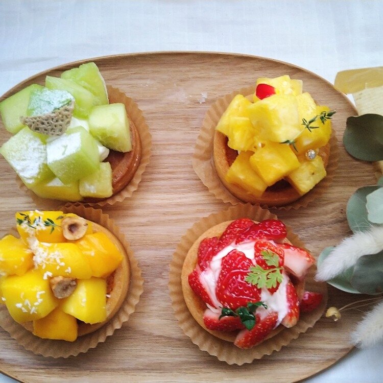 フレッシュフルーツの下のクリームが、コクのあるただの生クリームでは無いような??、タルトはしっかり目の生地で美味しくいただきました💓