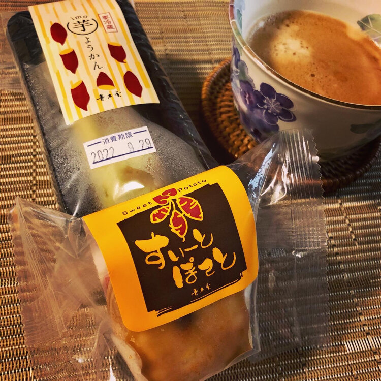 秋のおやつ☕️🍠🍁 #青木屋 #お菓子 #芋ようかん#すいーとぽてと #秋いろとりどり #Myことりっぷ
