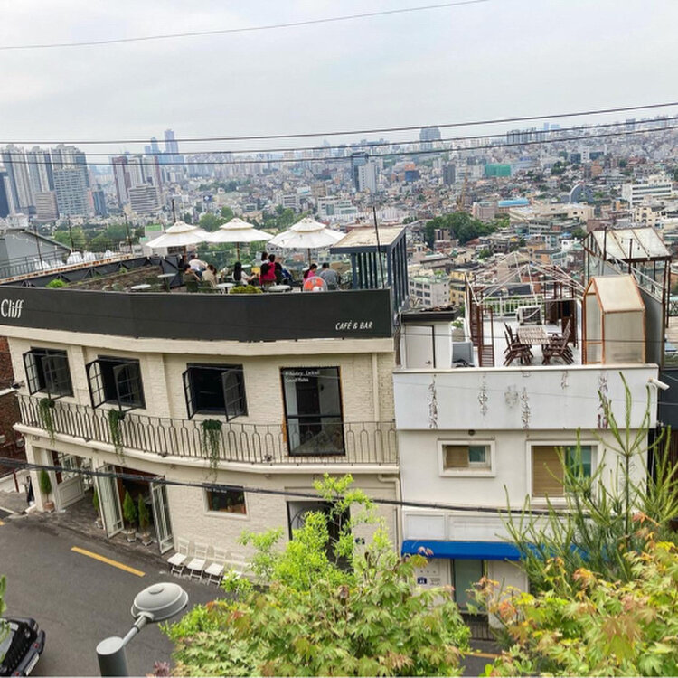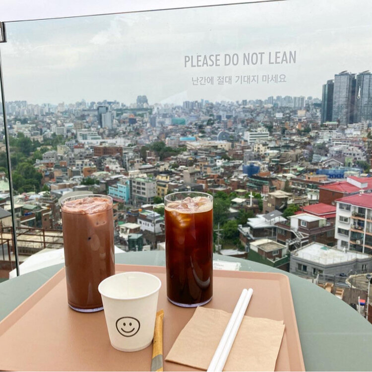 梨泰院クラスのタンバム2号店のルーフトップで念願のカフェタイム💛最高だー🙌