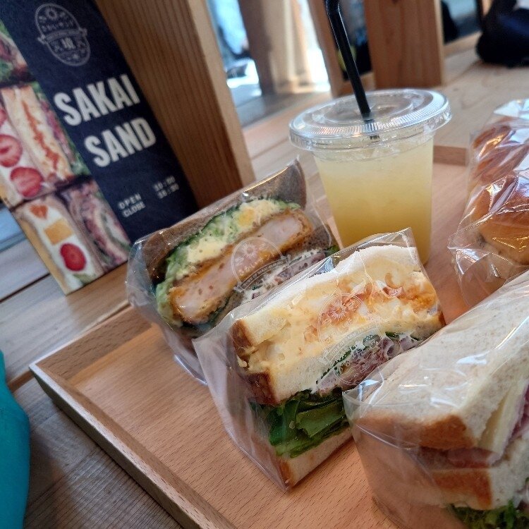 【さかいサンド】 境道の駅にあるサンドイッチ屋さん♪ 大人気のサンドイッチはパンがふわふわで具だくさん!一個五百円前後のお値段で種類は豊富✨ 私はエビカツサンドにしました! 野菜はふわふわシャキシャキで新鮮、エビカツはサクサクプリプリでめちゃくちゃ美味しかったです✨ サンドイッチって中身がけっこう潰れている印象だけど、ふわふわの新鮮なまま閉じ込めた感じでした!美味しかったです! かなり列は並びますが、注文とレジが流れるように早いので何にしようかなぁと選んでいるうちに順番が来ます! 店内と外に少しだけ食べるスペースはありますが、狭いのでほとんどの人が持ち帰りにしていました。 リピート間違いなしのサンドイッチ屋さんです♪次は何にしようかなぁ♪ #境道の駅 #さかいサンド #ゴールデンウィーク #道の駅