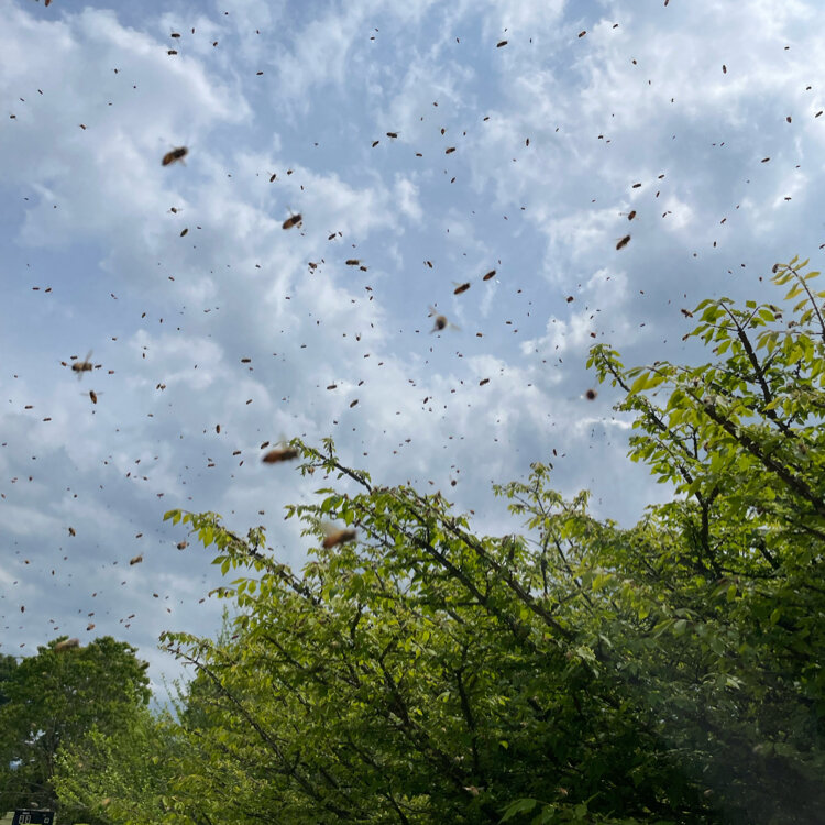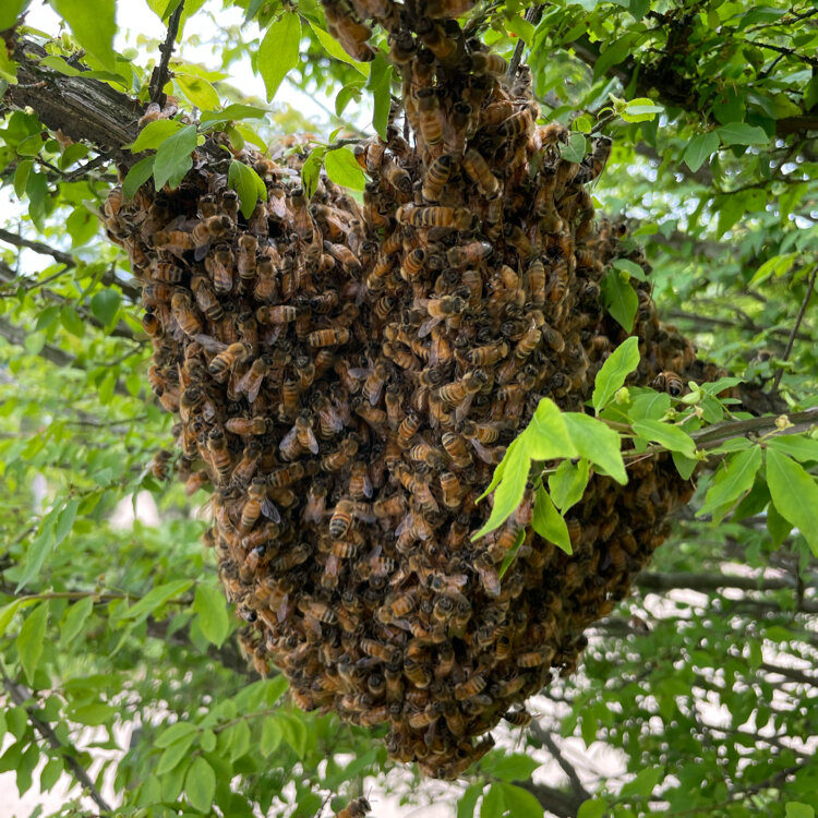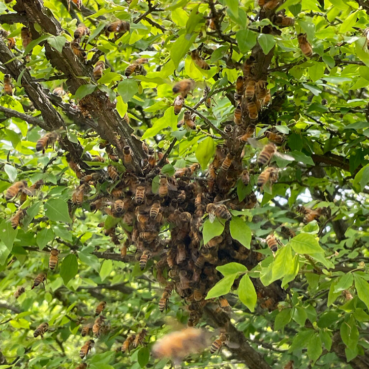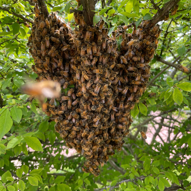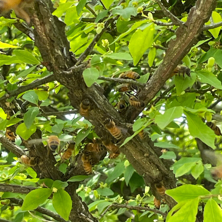 先週撮った写真ですが。 去年初めて見た分蜂。今年は、出来上がるまでの状態を10分程度でここまでを待ってみることができました。