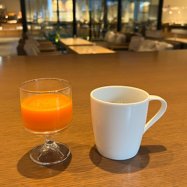 ホテルで、朝7時からの朝食時間前に「朝活」タイムを設け、こだわりのコーヒー☕️とスムージー🥤を提供しているということで、朝食会場兼ラウンジに行ってみました😊