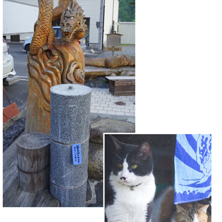 3枚目の龍の木像の場所は、『初恋水、百恋水』。岩泉の鍾乳洞『龍泉洞』と同じ冷たい水が出て…いません💦 今は川の工事のため、ここの水は止めているそうです。