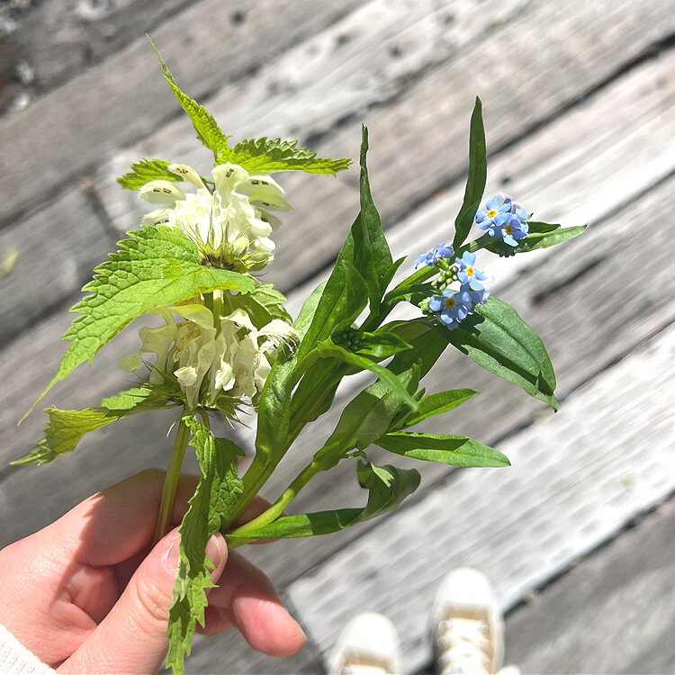 ケーキセットを頼んだら、勿忘草がついてきました💐か、可愛い…。💕✨💕