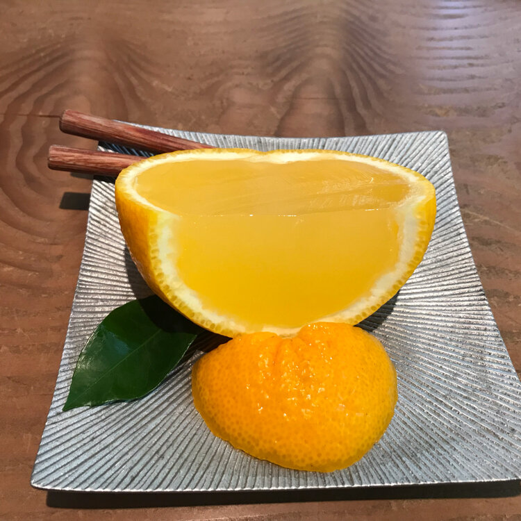 パーラー(懐かしい呼び名)で夏になるとグレープフルーツを丸ごとくり抜いて果汁を搾り、ゼラチンでもない、寒天でもない、カラギナンと言うので固めてました。1日20個位一人で作ってました。一つ500円だった様な?