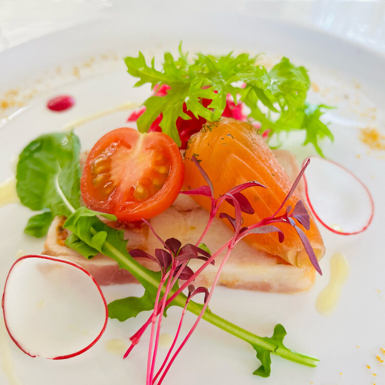 ⚪︎清里湧水で育った鱒の自家製里芋のテリーヌ