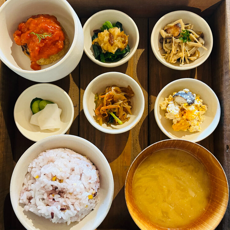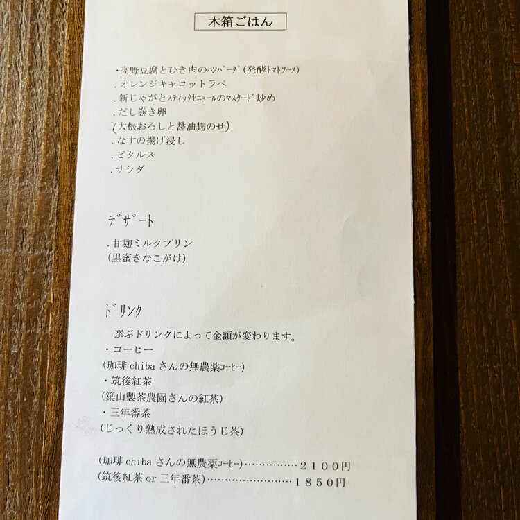 前日までの完全予約制で、ドリンクとデザート付きの木箱ごはんランチ✨️