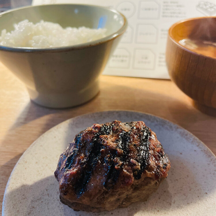 さてさてお味は?めっちゃ美味♡羽釜炊いたご飯がめっちゃ美味しかった!そして、炭焼きハンバーグ❤️たまりません。つなぎなしの牛100ですね。
