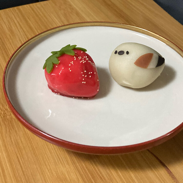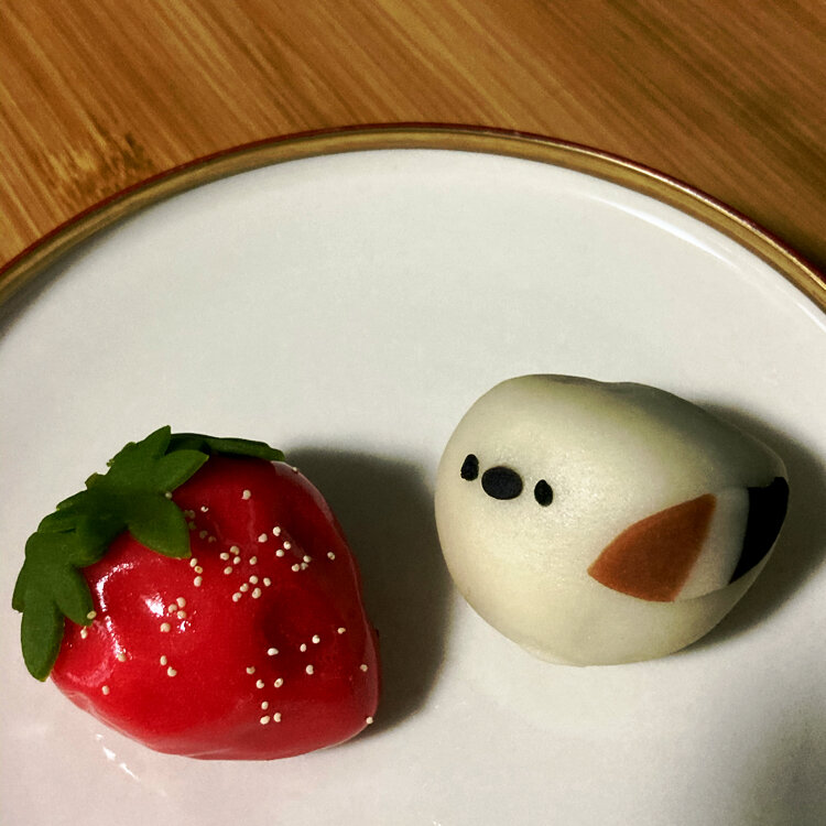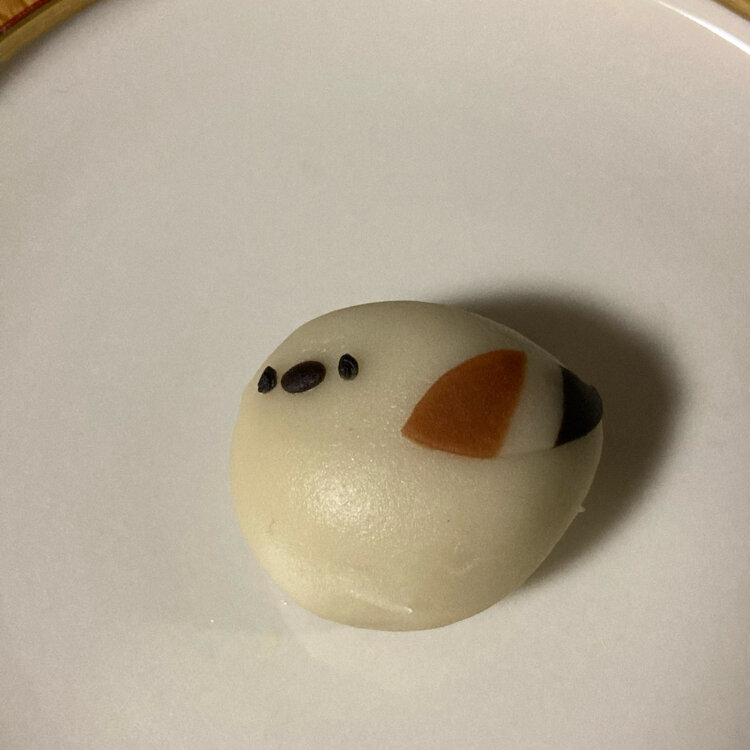 シマエナガが将棋の駒を抱いてる生菓子が