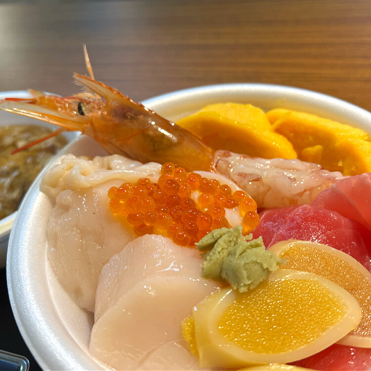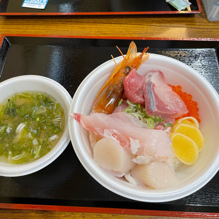市場食堂のマグロすき身丼にしようか魚菜センターののっけ丼にしようか🤔