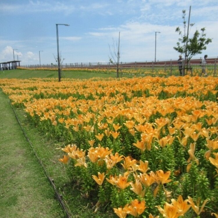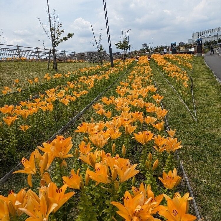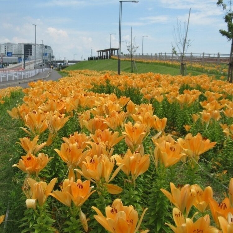 「ソラムナード羽田緑地」の花壇に植えられている「スカシユリ」のお花が見頃を迎えているそうです。