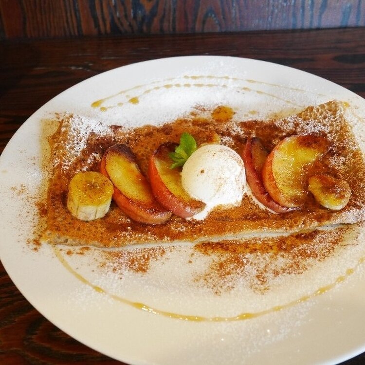ガレットは皮付きリンゴの甘酸っぱさとバナナと