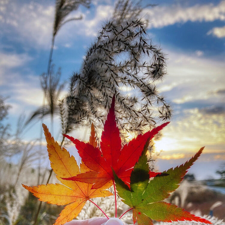 ・ 📍熊本県阿蘇市 ミルクロード すすき🌾紅葉🍁夕日☀️ やっぱり秋が1番好きだな。 #秋さんぽ #熊本県 #秋 #自然 #kumamoto #くまもと #すすき #誰かに見せたい景色 #紅葉 #夕日