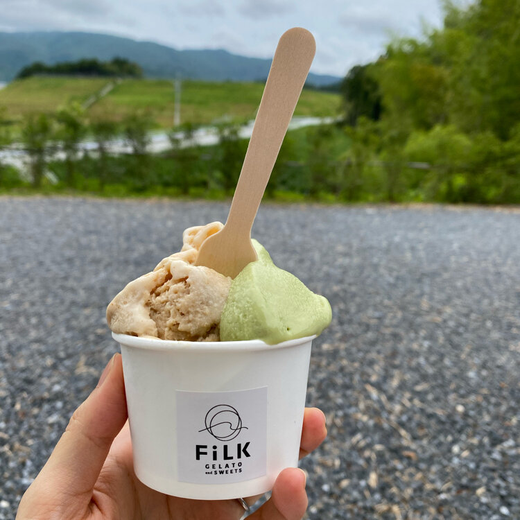 #無添加のアイスクリームやさん #FiLK さんへ。 #大台町 のお茶味 と #黒蜜きなこ のダブルで。 ミルキーな和のテイスト間違いない。 #ソルベ系 も気になる #三重県 #伊勢市 #伊勢志摩 #神薗町 #ジェラート #伊勢市のはずれに