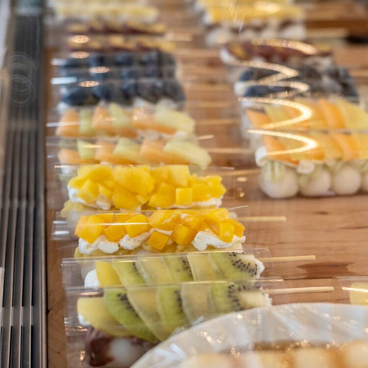 フルーツとだんごの間にはクリームの層もあり、意外にボリューミー!これはマンゴーと冷やし焼き芋ですが、ほかにもいろいろあって全部食べたくなりました🤣