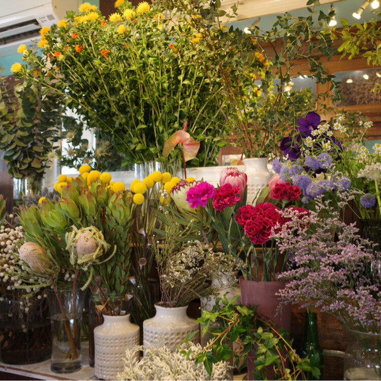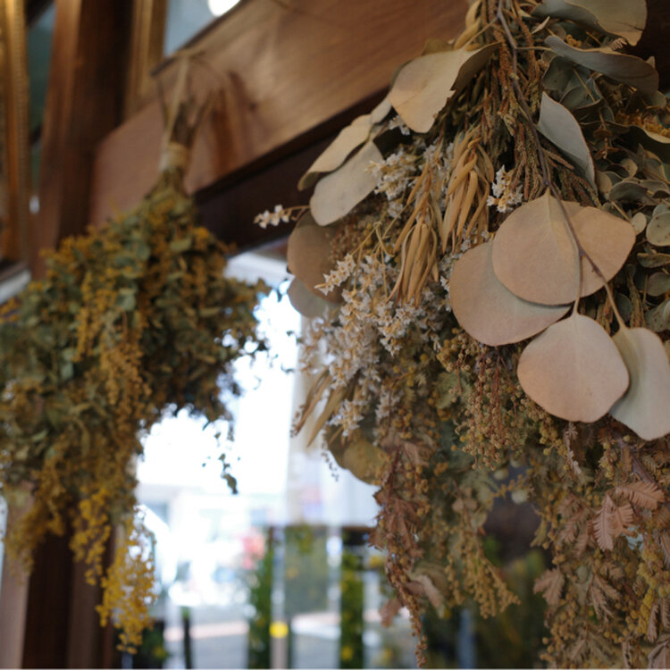店内はお花やスワッグに埋め尽くされ、ほのかな香りに包まれています。