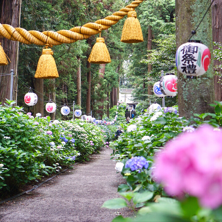 栃木県鹿沼市 磯山神社 あじさい祭り (〜6月30日まで) ・ 参道・社殿周囲に植えられた 28種2500株のあじさいと コロナ禍で中止されていた提灯が 今年は設置され あじさいと提灯のある風景に トキメキがとまらなかった。 ・ 夜には提灯にあかりが灯ります。 ・ 北関東自動車道都賀I.Cから10分 東北自動車道 鹿沼I.C.から15分 東武日光線楡木駅から徒歩30分