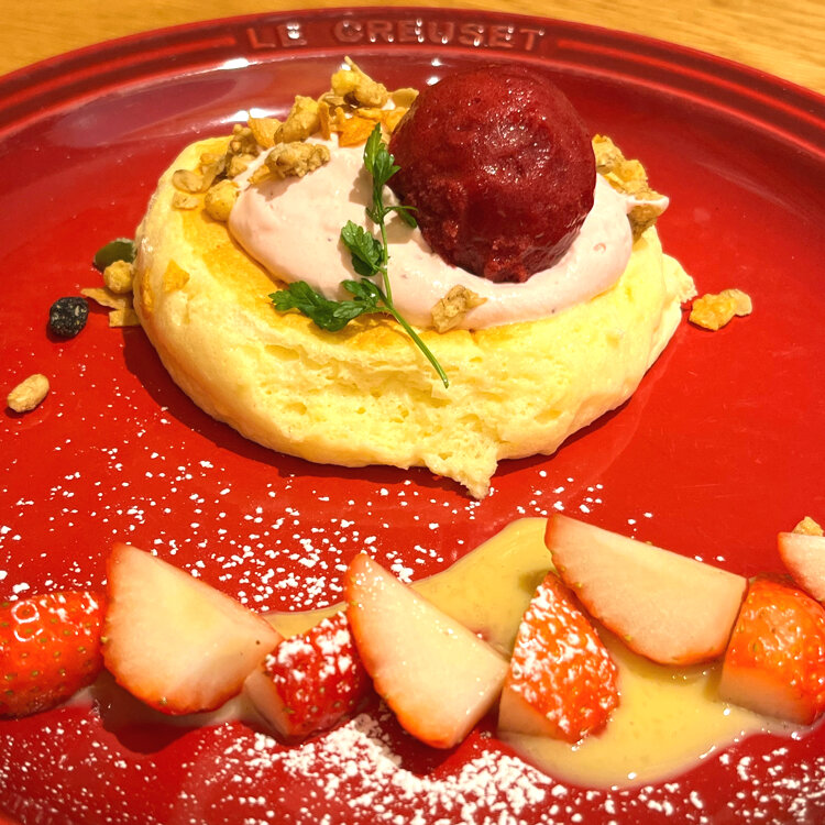 パンケーキはもちろん柔らかくて、ナイフなどつかわなくってもスプーンで食べれます.