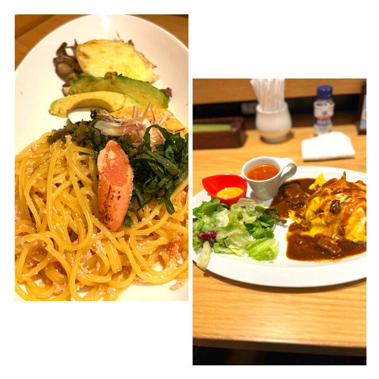 パスタとサラダのセットに付いてる一枚のパンケーキ..